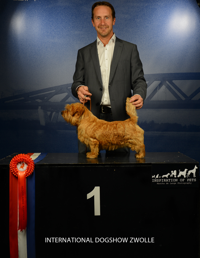 -Frutsel heeft op de show in Goes haar derde 1U behaald en is hiermee Nederlands Jeugdkampioen. Erg blij zijn we met dit resultaat, zeker ook omdat dit de eerste Norfolk Terriër is waarvan we de vader en moeder ook zelf gefokt hebben.